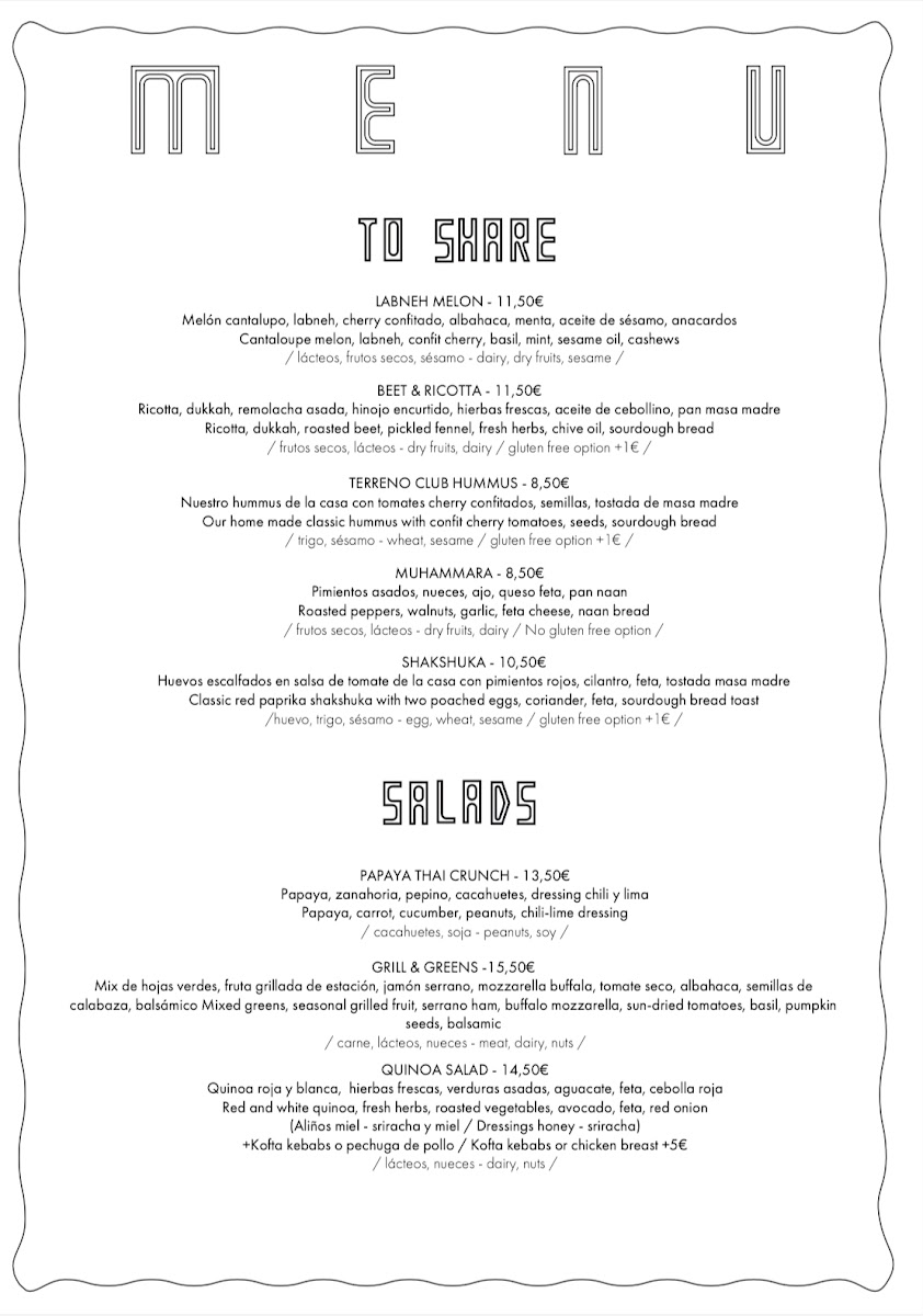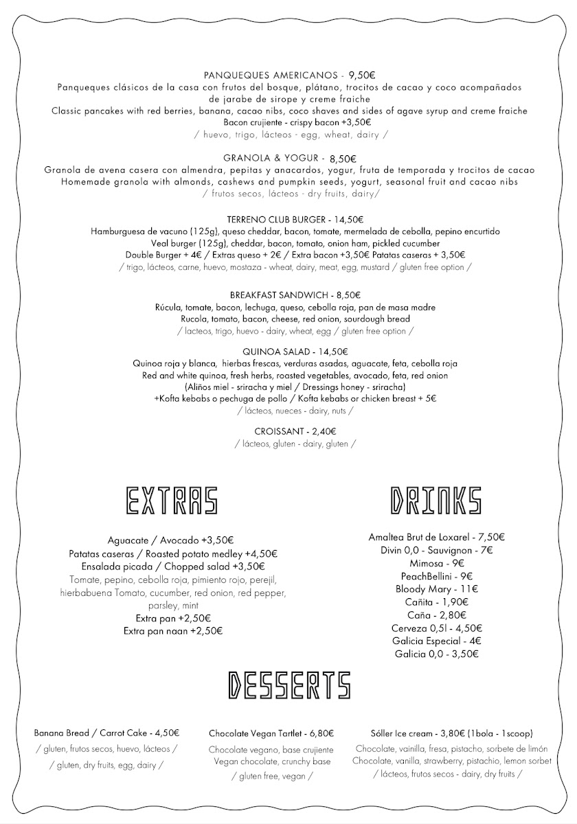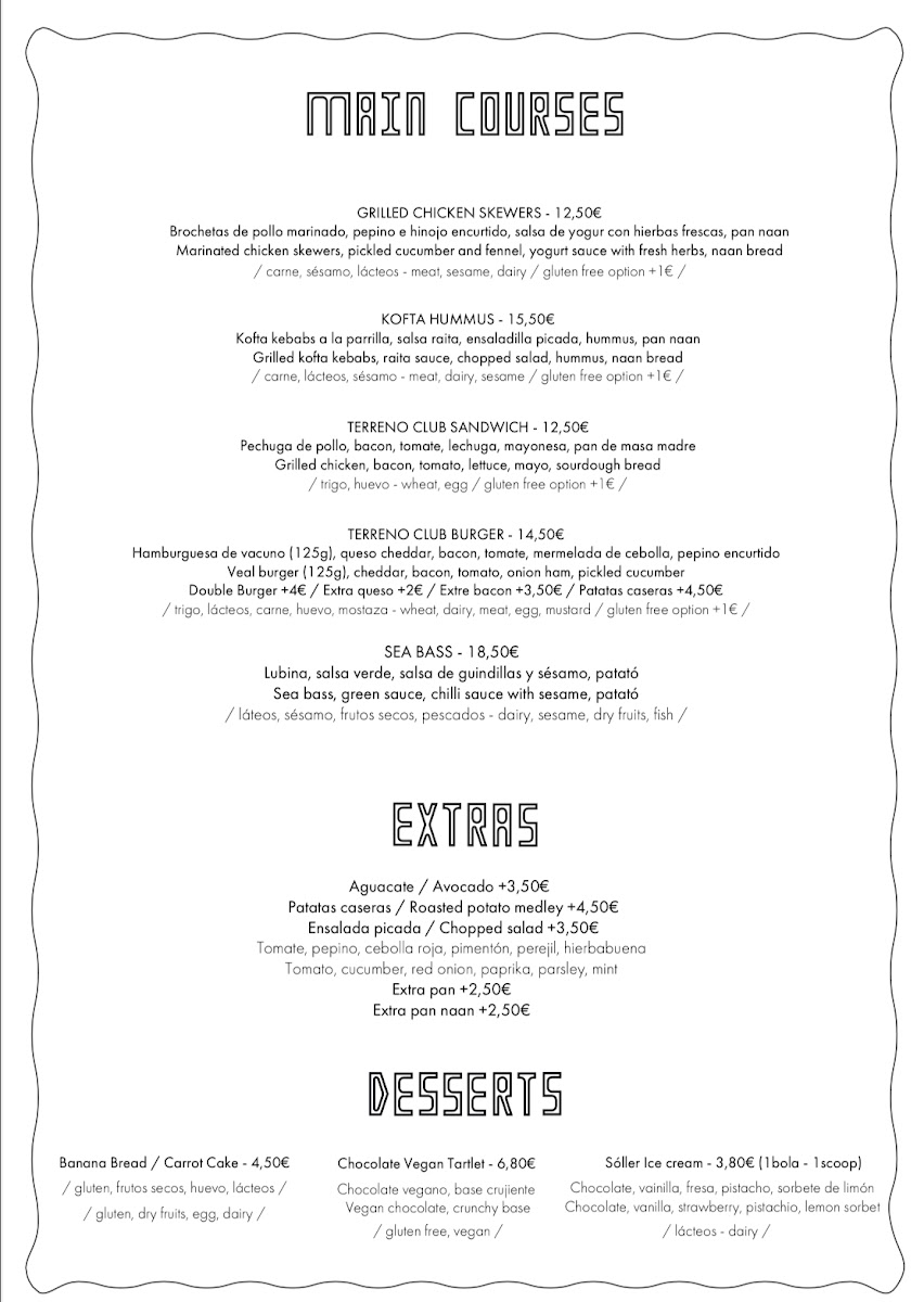 Terreno Club Menu